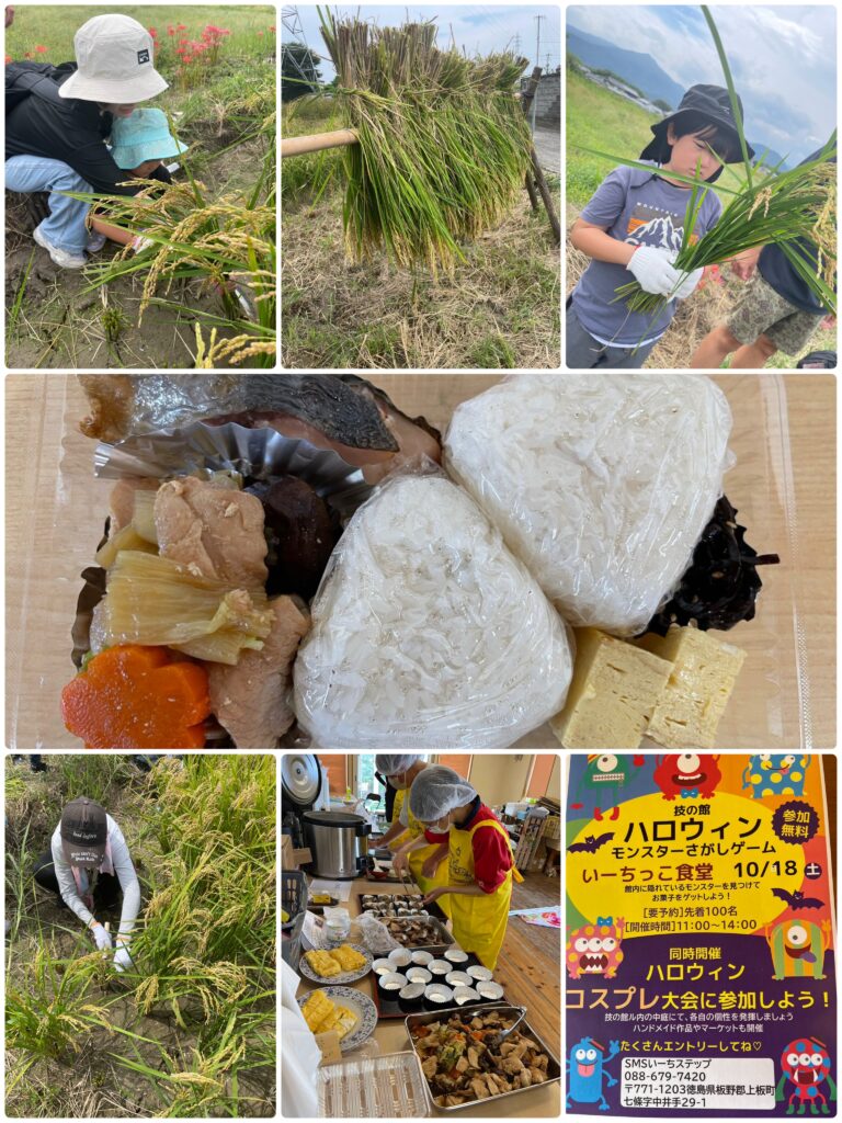 お弁当を持って田んぼに行き稲刈り体験🌾をしてもらいました