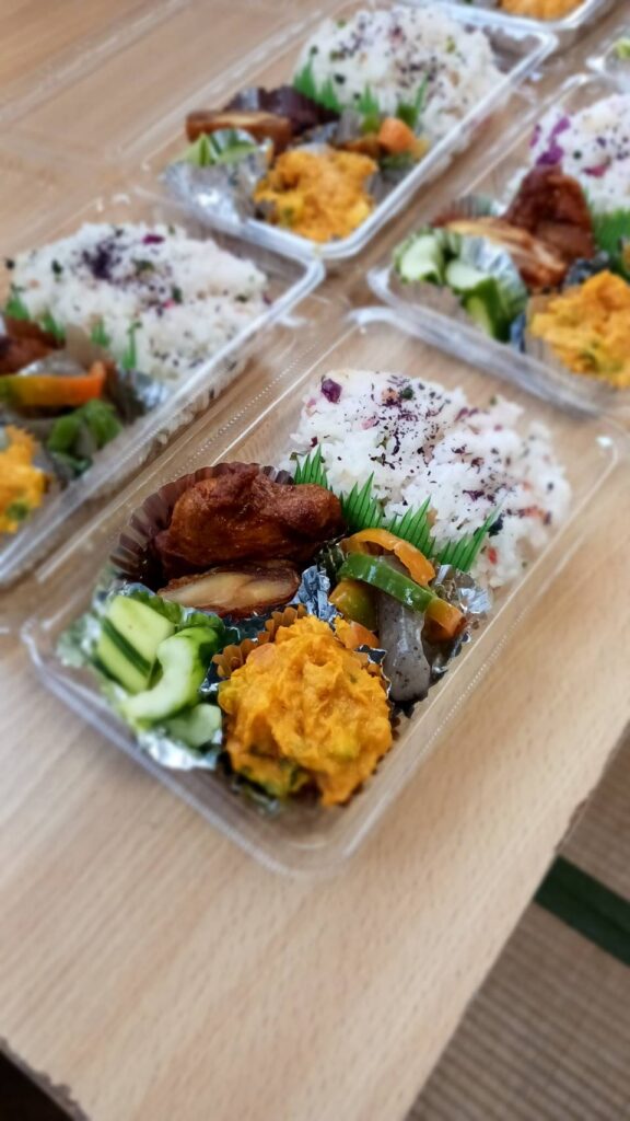 お弁当と一緒に戴いた食材を少しですが、お渡ししています。