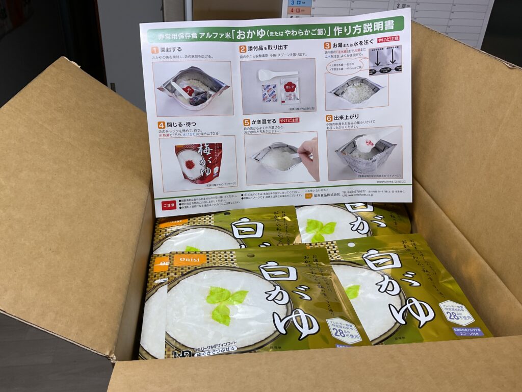 徳島県鳴門病院様より、防災食「白がゆ」を頂きました。 暖かいご支援ありがとうございます。 こども食堂様へお渡ししたいと思います。