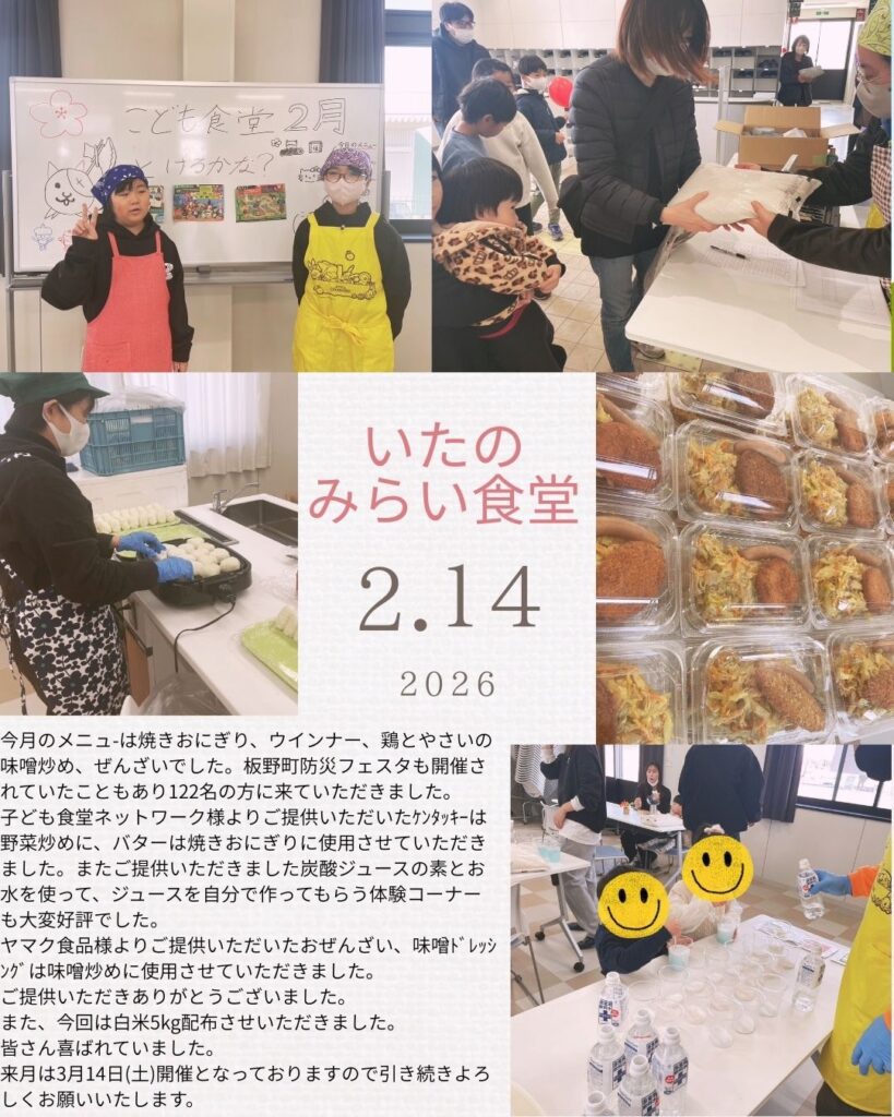 いたのみらい食堂を運営しております株式会社さわの橘と申します。2/14に開催しましたので報告をさせていただきます。